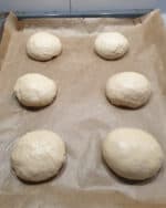 • Den Teig in 6 gleich große Stücke teilen und zu einem Brötchen formen.