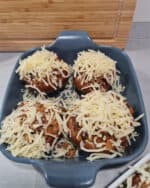 - Bei 200° Ober-/Unterhitze auf mittlerer Schiene für 15-20 Minuten im Ofen überbacken, bis der Käse zerlaufen und goldbraun ist.