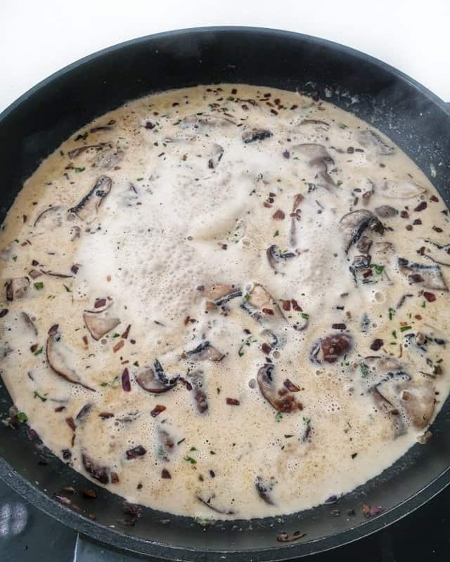 Meine Rahm Soße mache ich mit frischen Champignons, Sahne und ein paar Gewürzen, das geht super schnell und schmeckt allen. Du kannst die Tortellini mit der Rahm Soße auch in eine Auflaufform geben und dann mit Käse überbacken, dann hast du schnell und einfach einen leckeren Auflauf gezaubert.